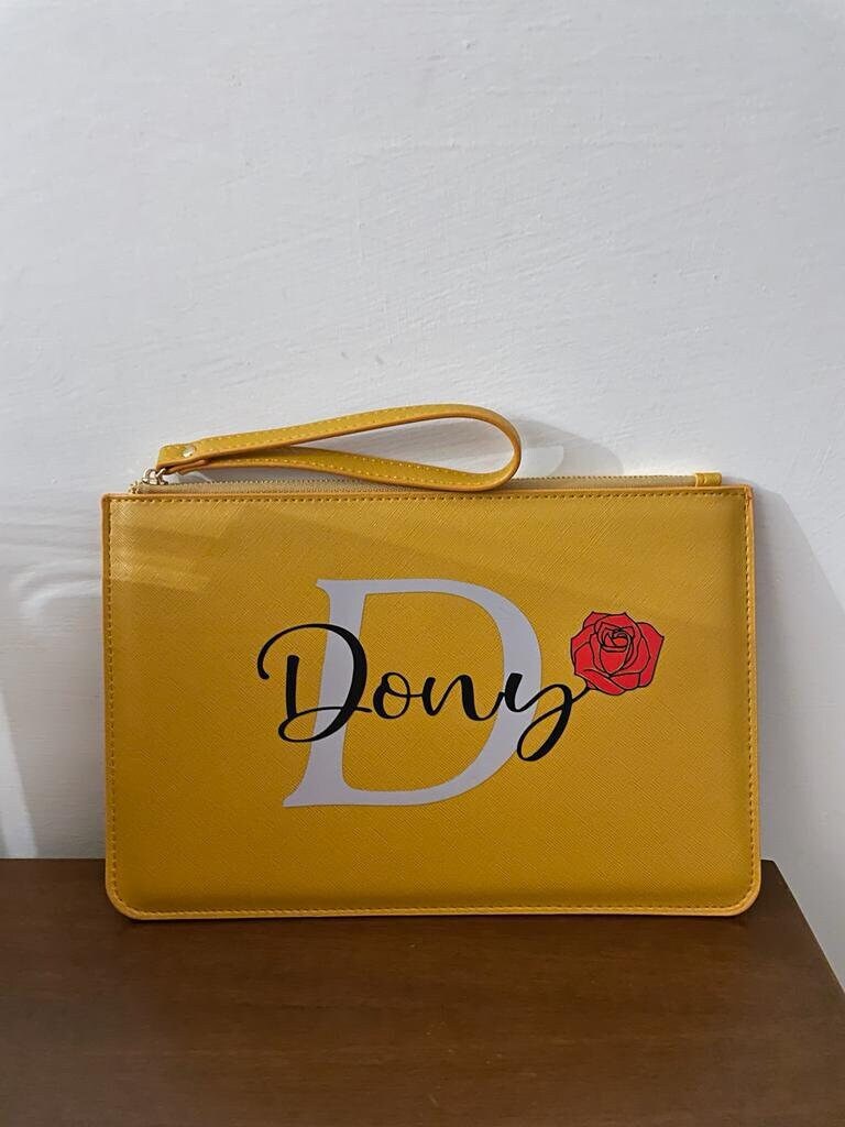 🌹 Introducing our elegant faux leather wristlet, embellished with a romantic touch: your name in vinyl combined with a beautiful red rose. This clutch, available in a wide selection of colors, is the perfect balance between style and elegance.