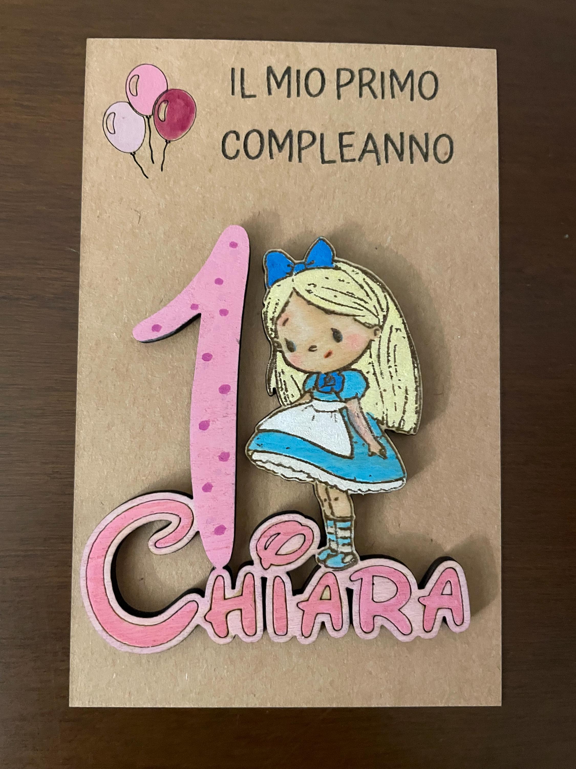 Transform your daughter's first birthday into a magical keepsake with our enchanting personalized wooden magnet. This small work of art, laser-engraved and hand-painted, evokes all the magic and fantasy of an enchanted world, perfect for celebrating this special day in your little girl's life. Personalize it with your daughter's name to create a unique favor that will wow your guests and add a touch of magic to the party.
