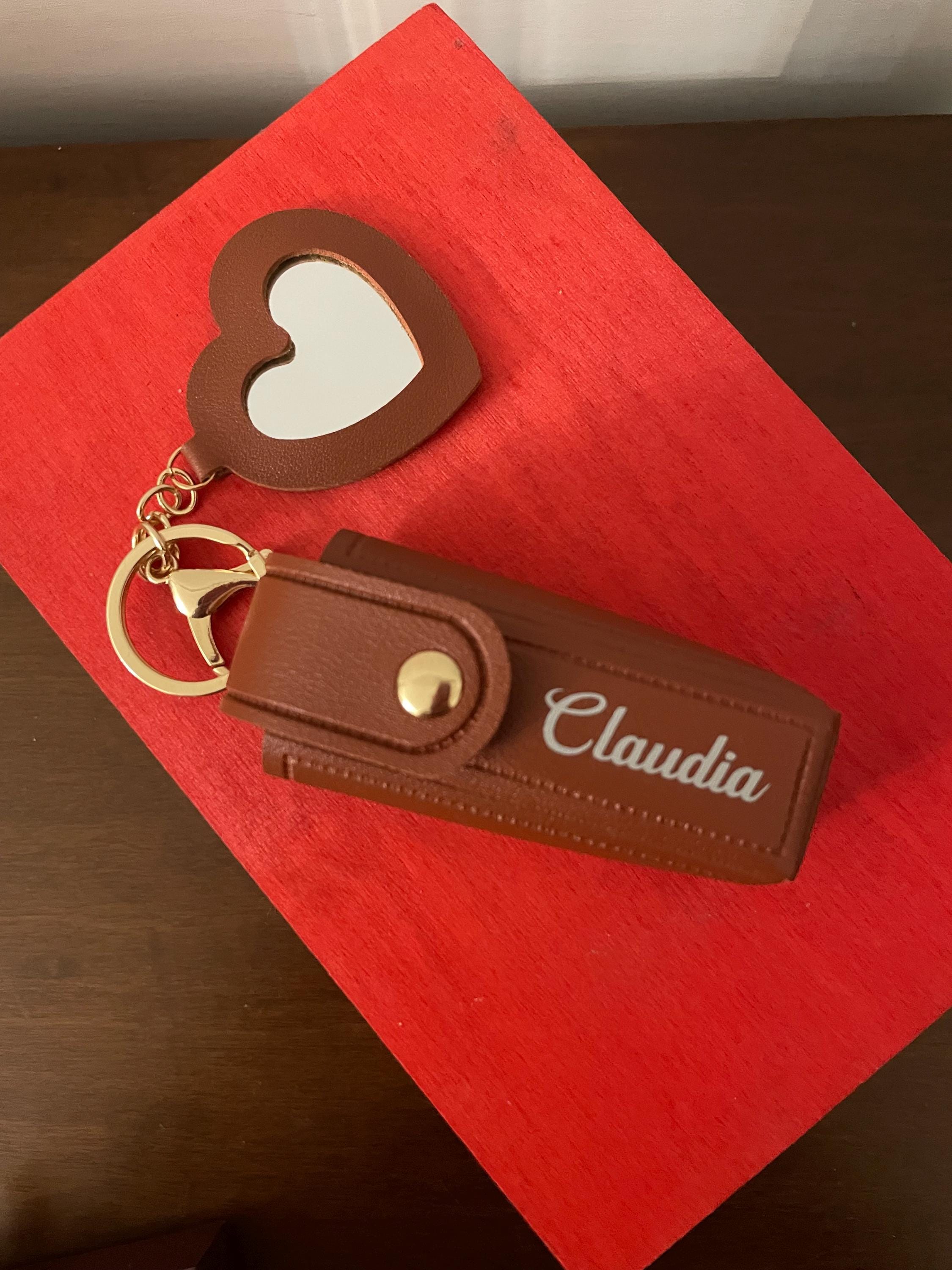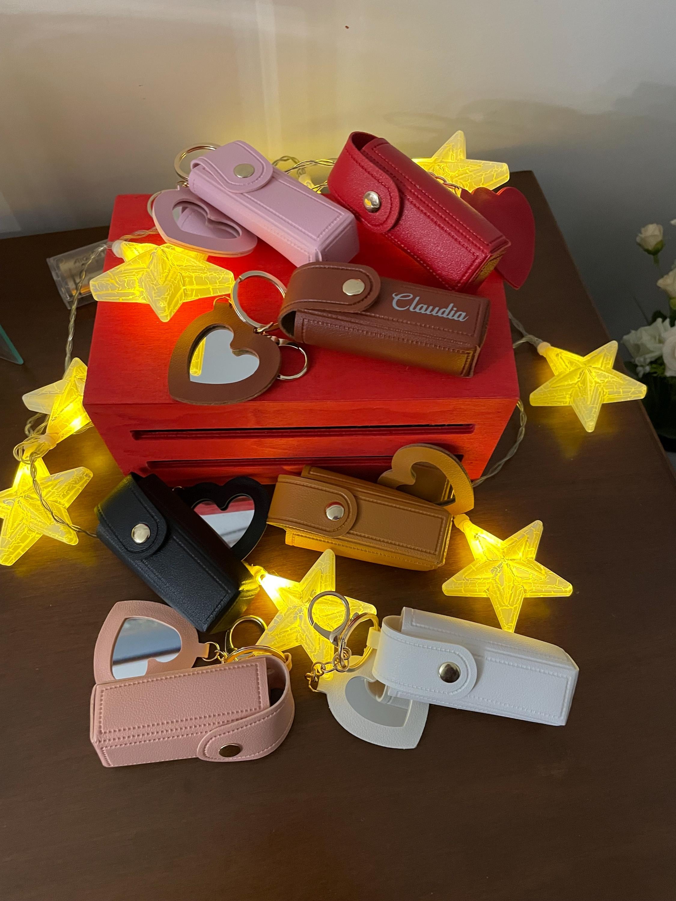 This Christmas, surprise your friends with our customizable faux leather lipstick holder/keychain! A practical and chic accessory, complete with a mirror, perfect for on-the-go. Available in six colors: red, white, pink, brown, black, and mustard.