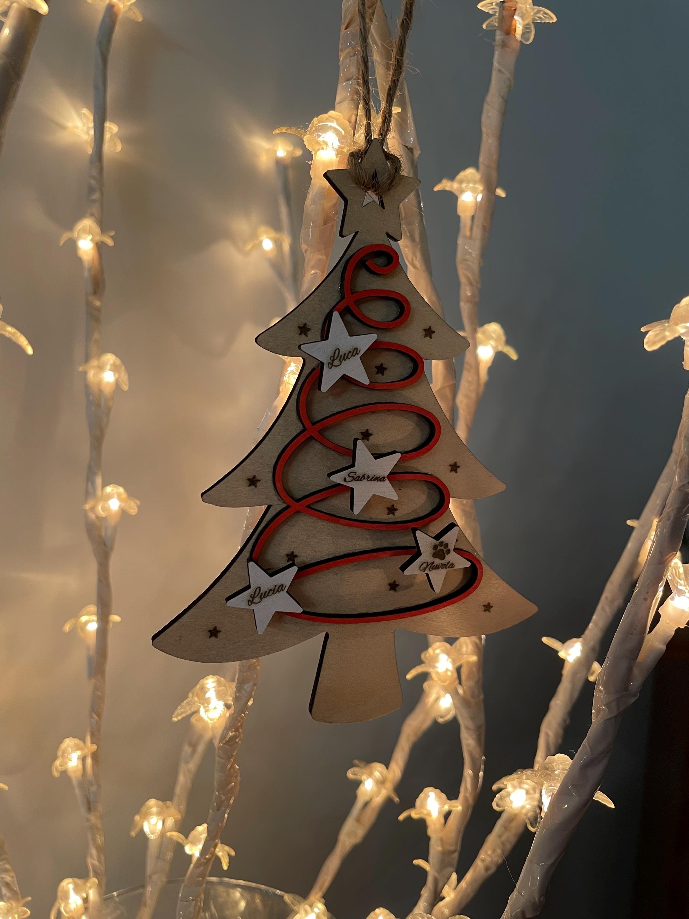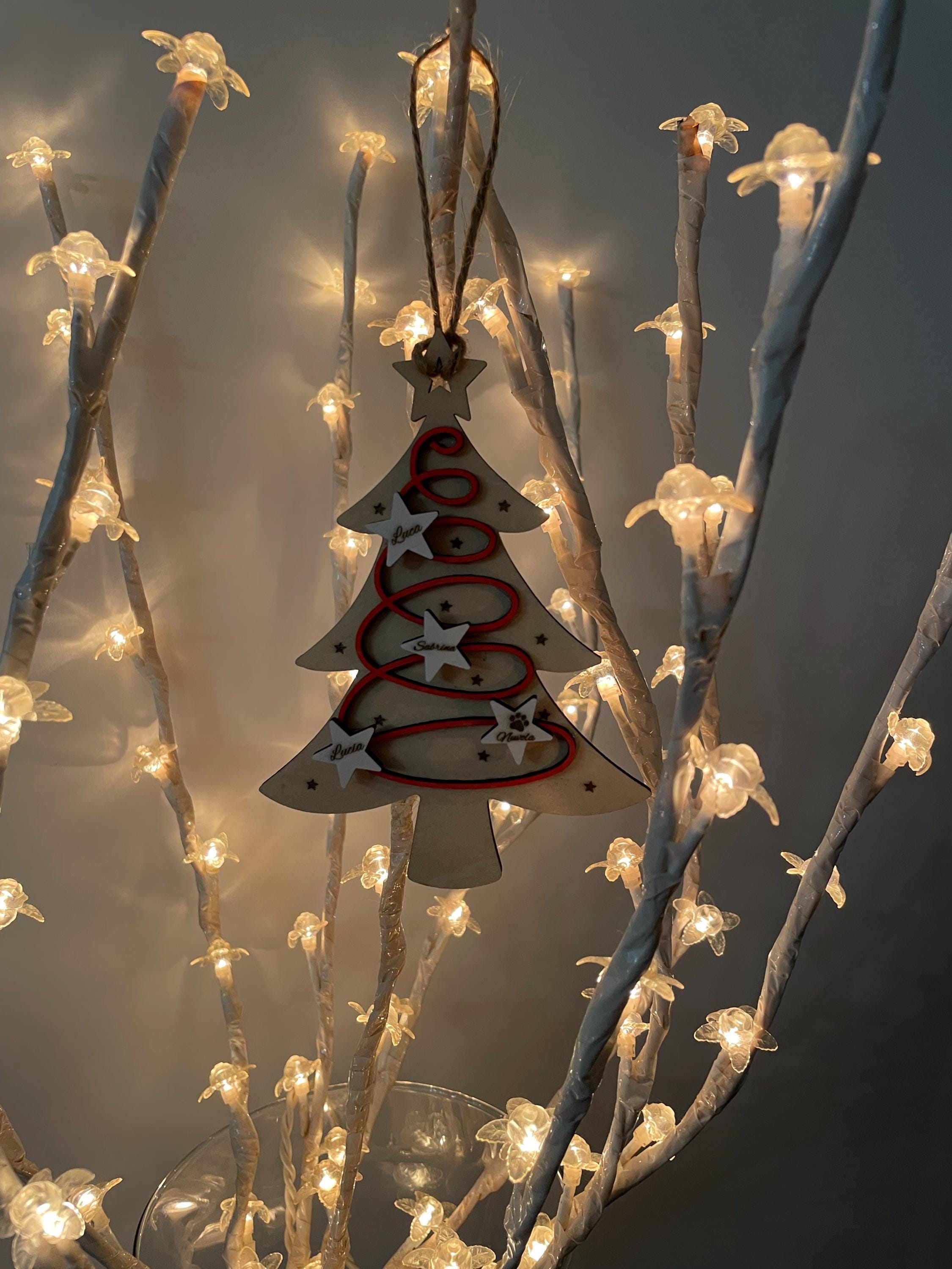 The laser-engraved stars with your names (and those of your irreplaceable four-legged friends!!) follow the red thread of the holidays and create a keepsake to hang every year.