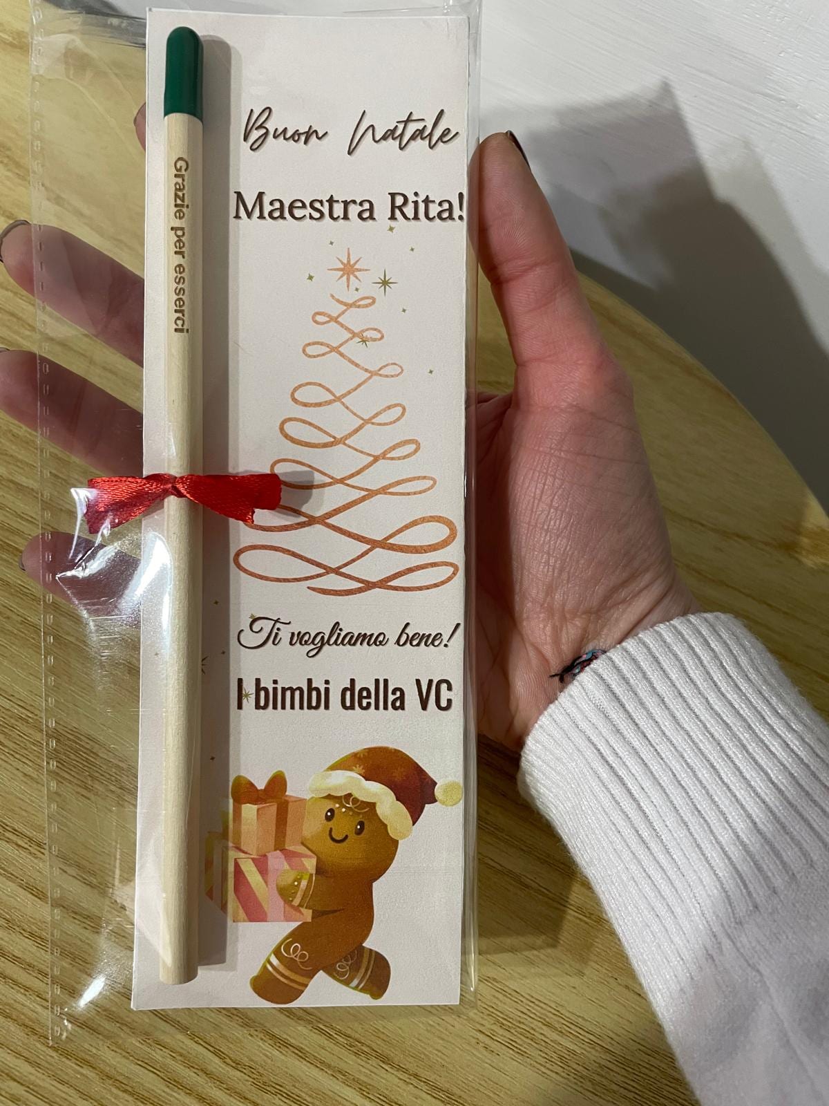 Christmas card for the teacher with name and class + laser-engraved plantable pencil ("Thank you for being there")