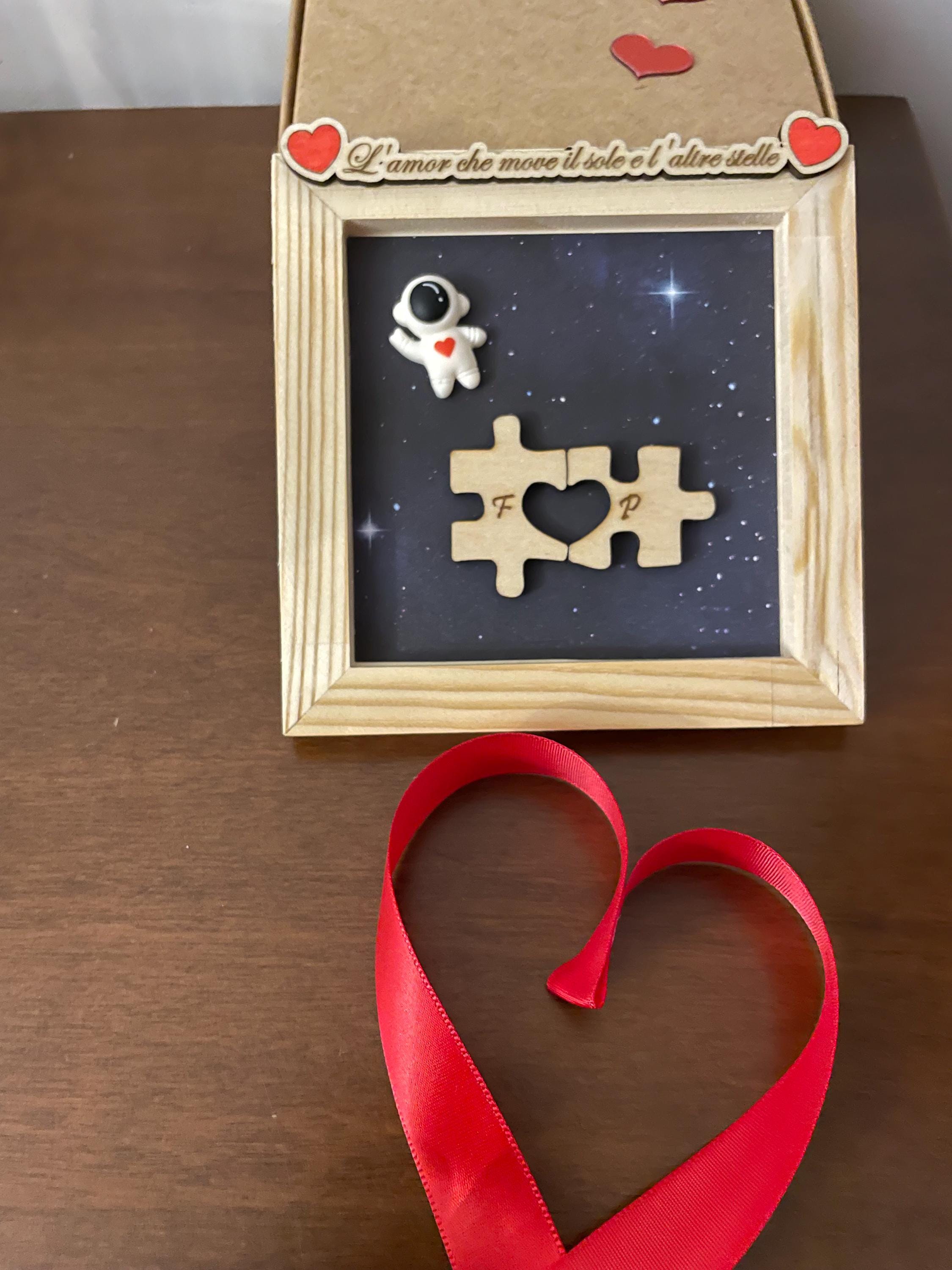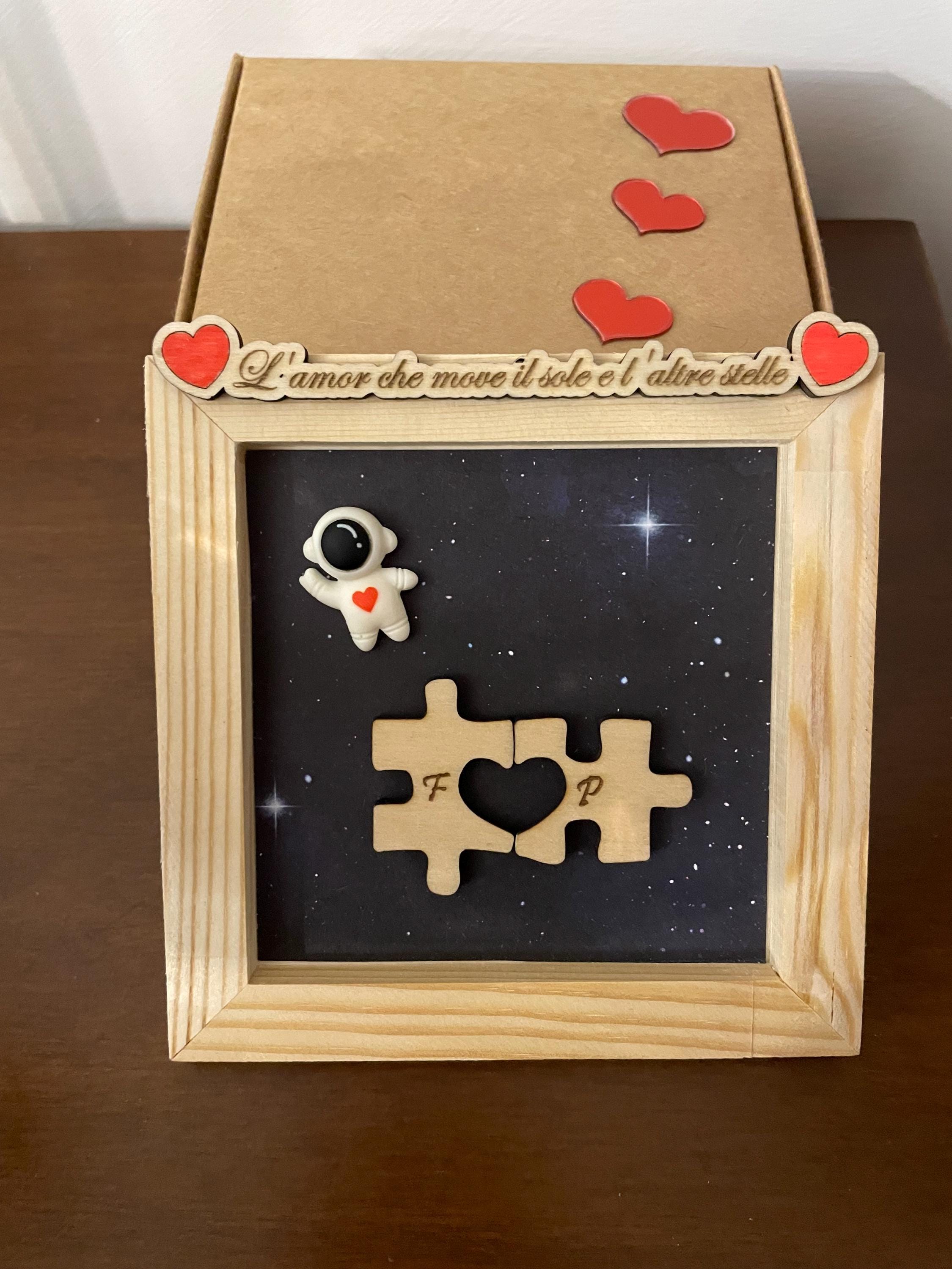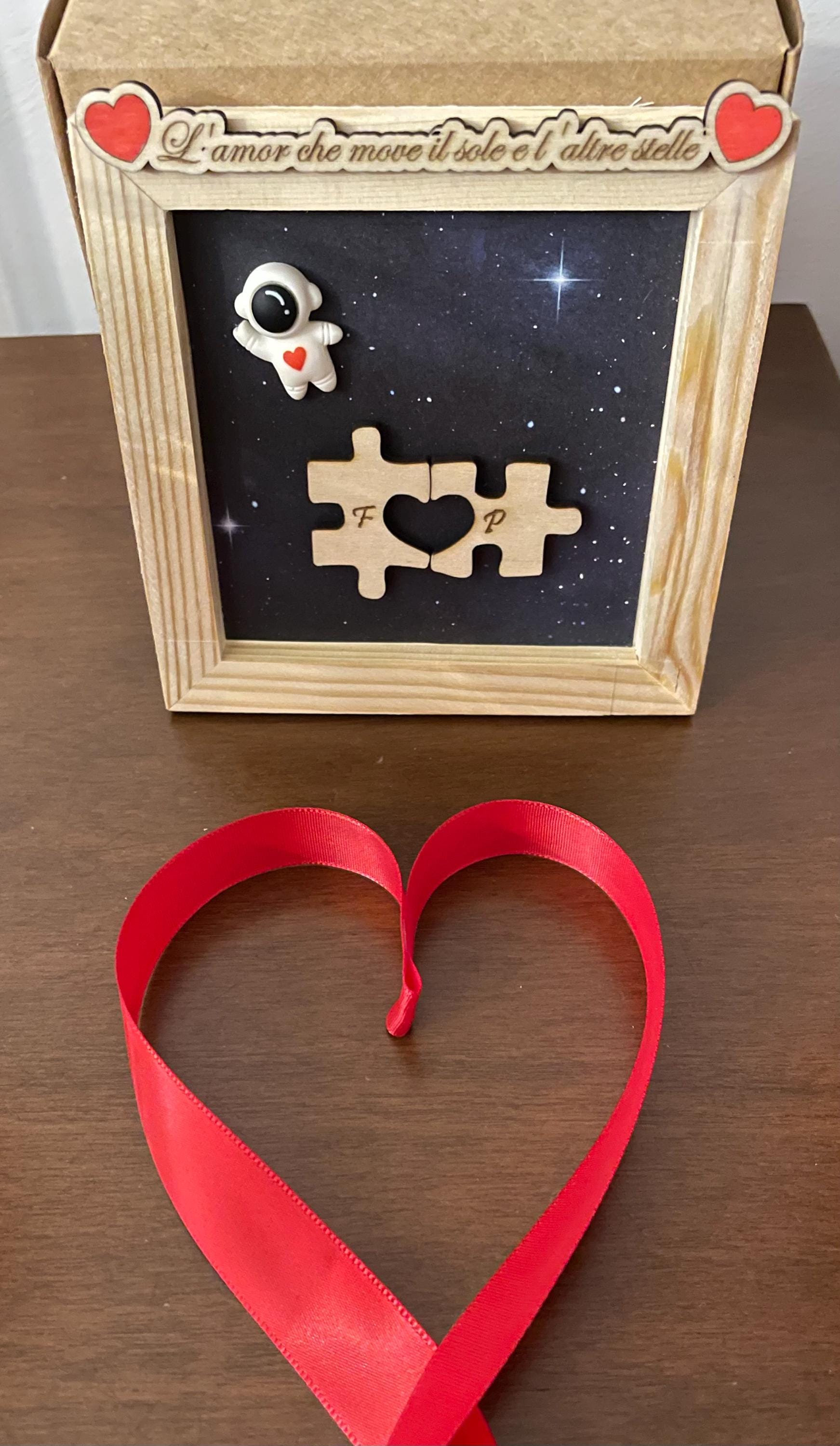 Our mini 3D frame is a small, private constellation: a night sky, an astronaut in love, and two puzzle pieces that, when they meet, do something simple but powerful: they become "us." 🧩❤️