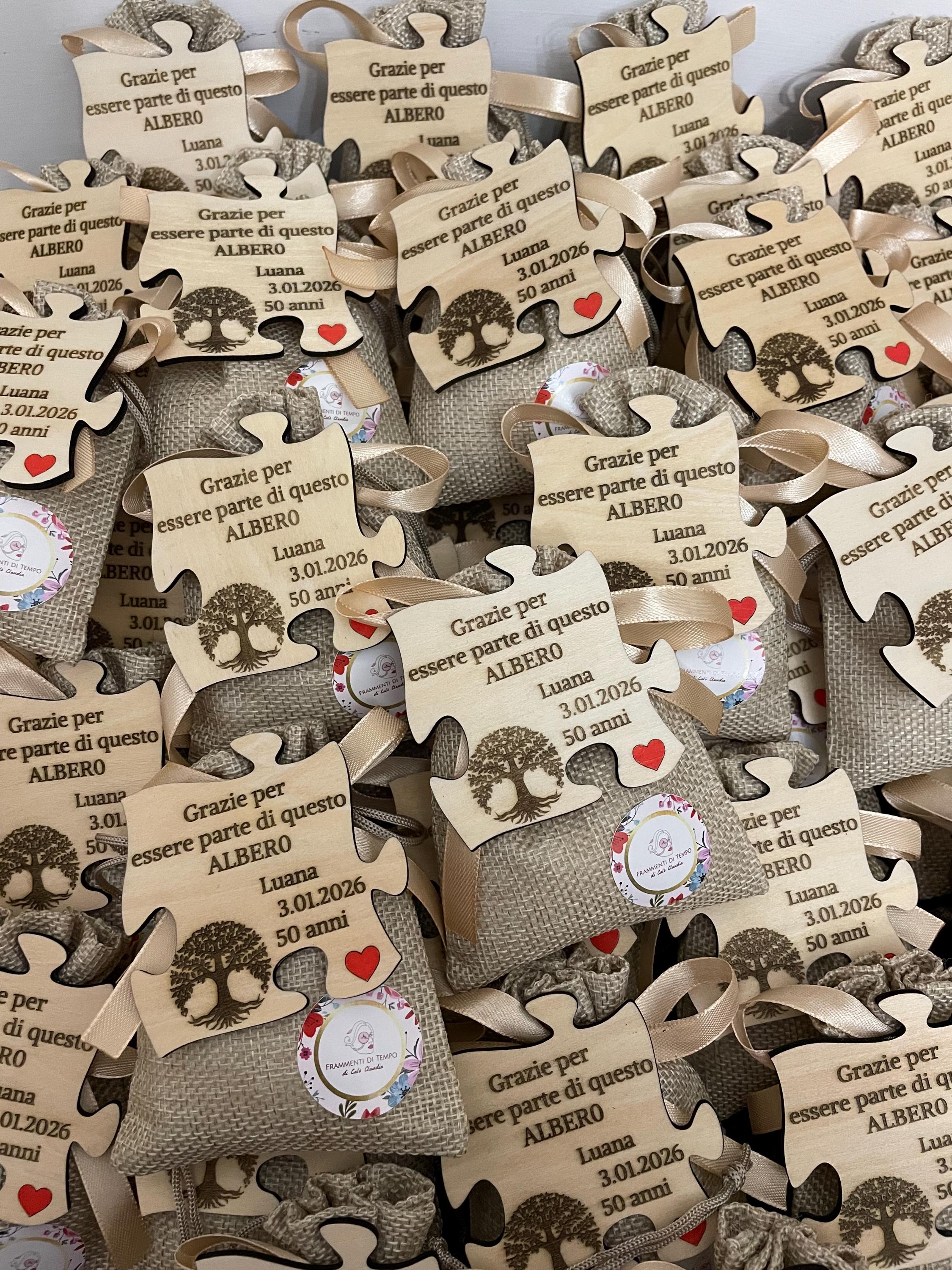 This puzzle-piece-shaped favor, designed to celebrate turning 40, is a symbol of gratitude:
