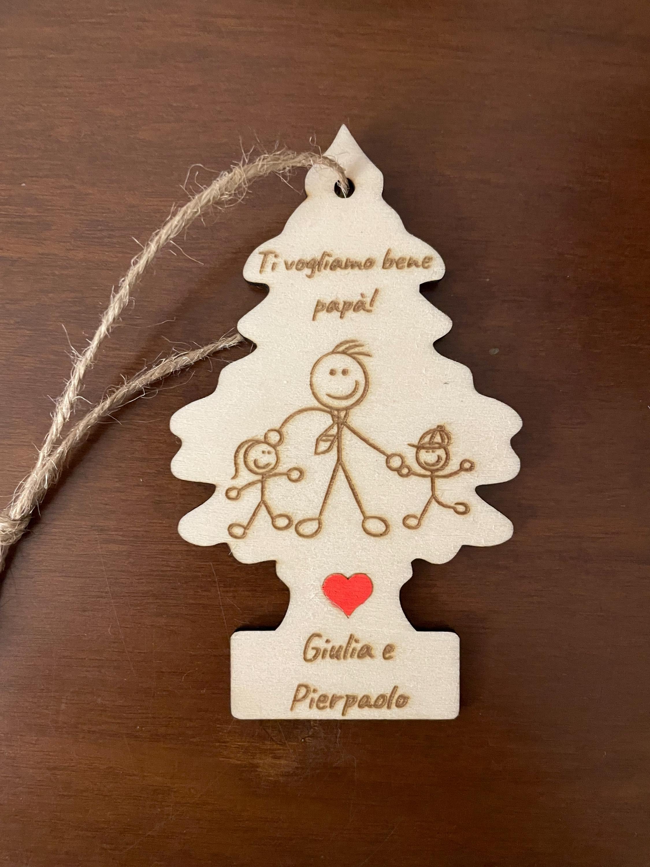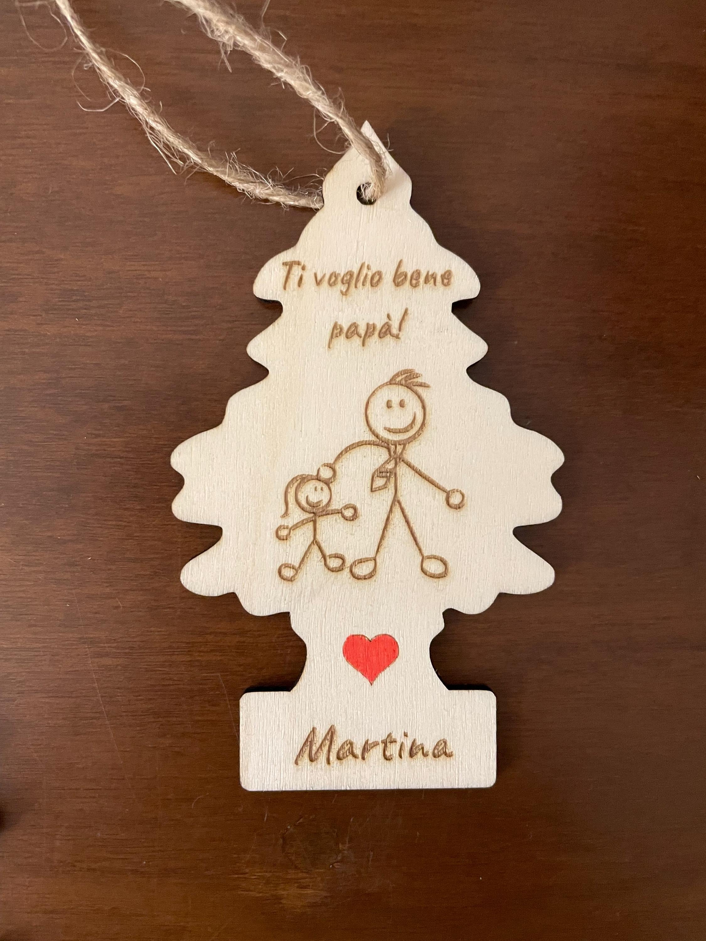 Make Father's Day even more special with our wooden car decoration, featuring a stylized laser-engraved image of dad and son/daughter, personalized with the children's names and a short dedication.Size: 11*6.5cm
