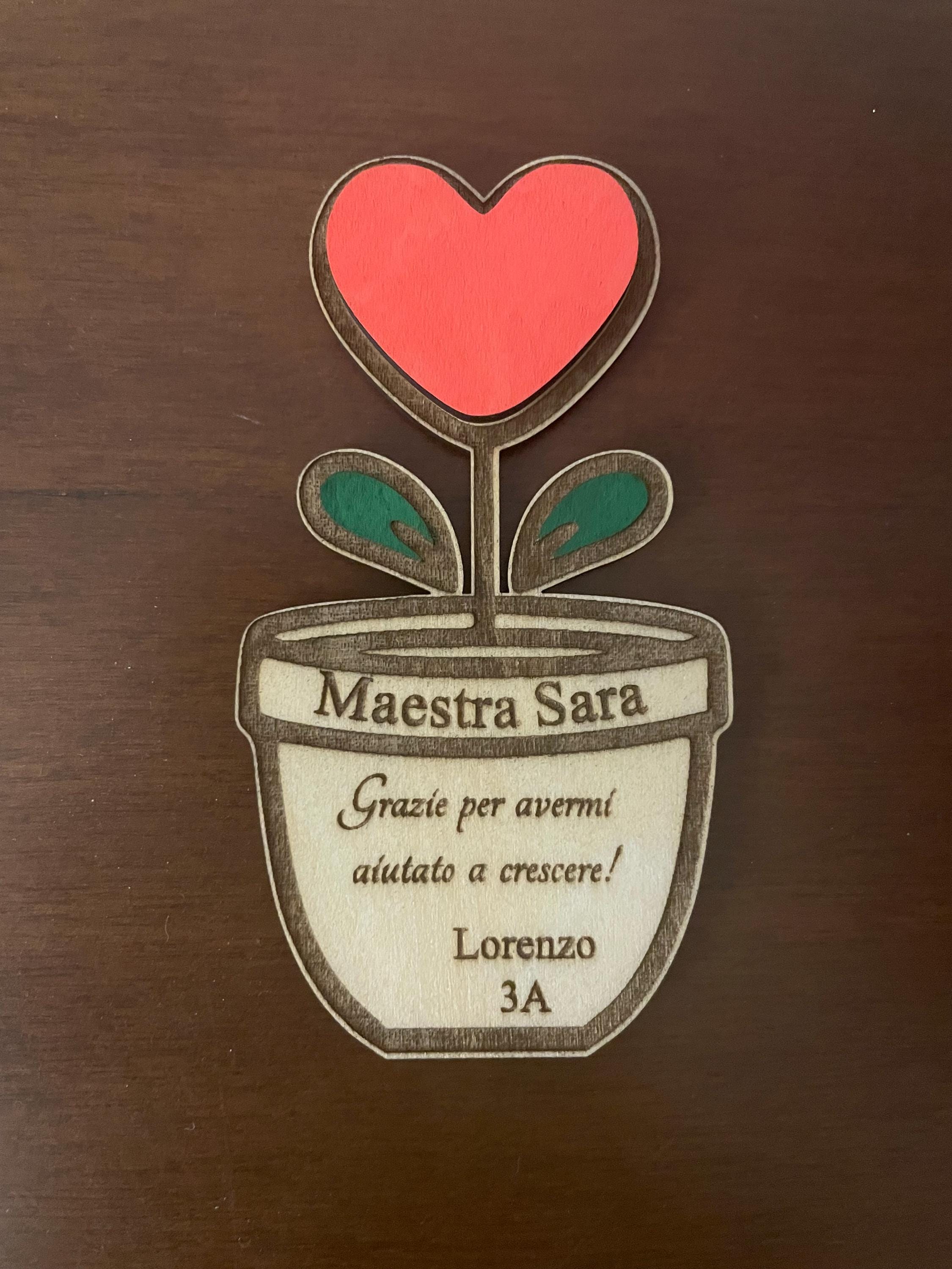 A personalized wooden magnet in the shape of a charming vase with a heart-shaped flower, carefully engraved to remind the teacher of her precious, unique, and irreplaceable role in her students' growth. A deeply meaningful gift, designed to thank those who teach with love and patience every day, leaving a lasting impression.