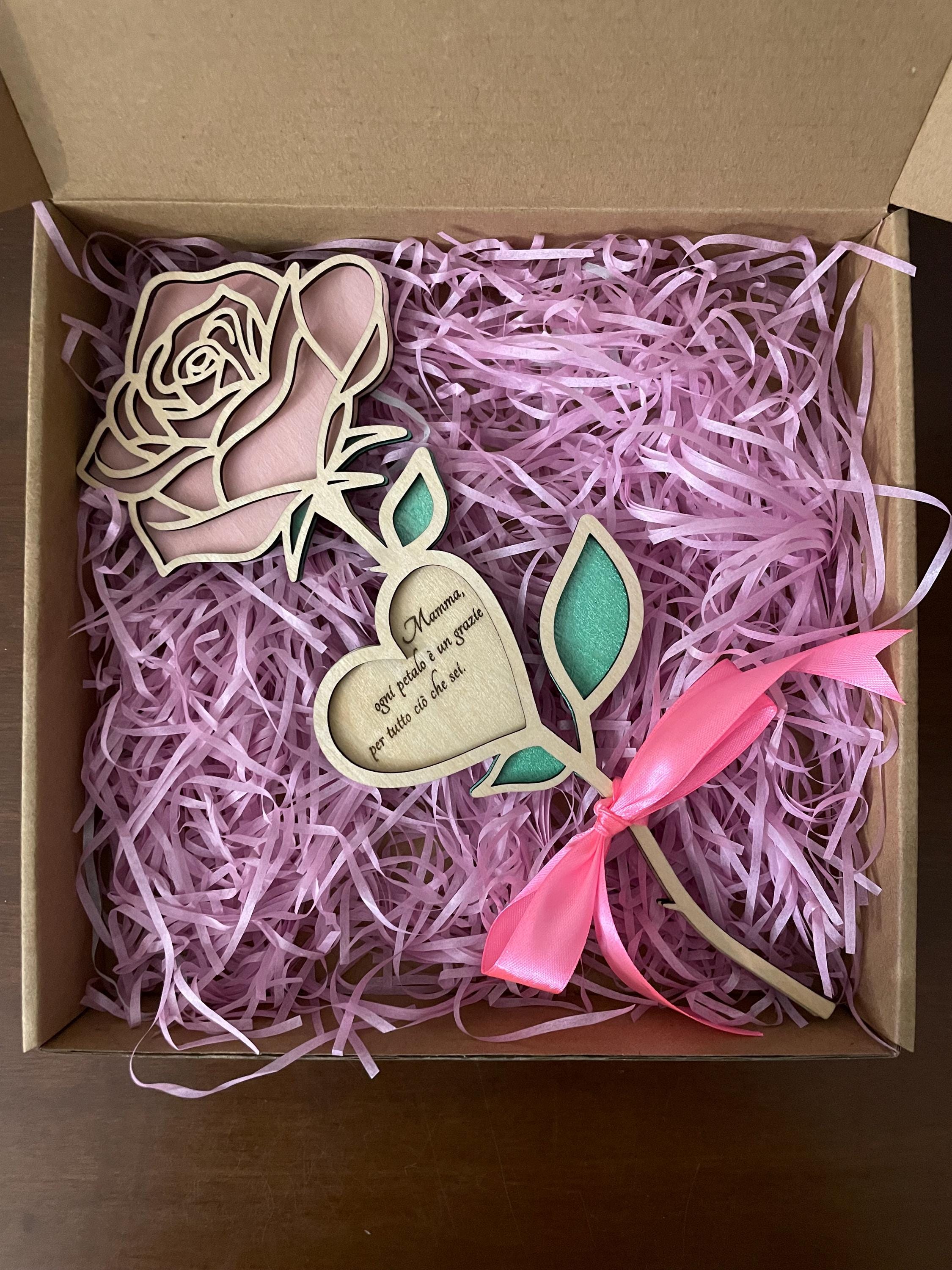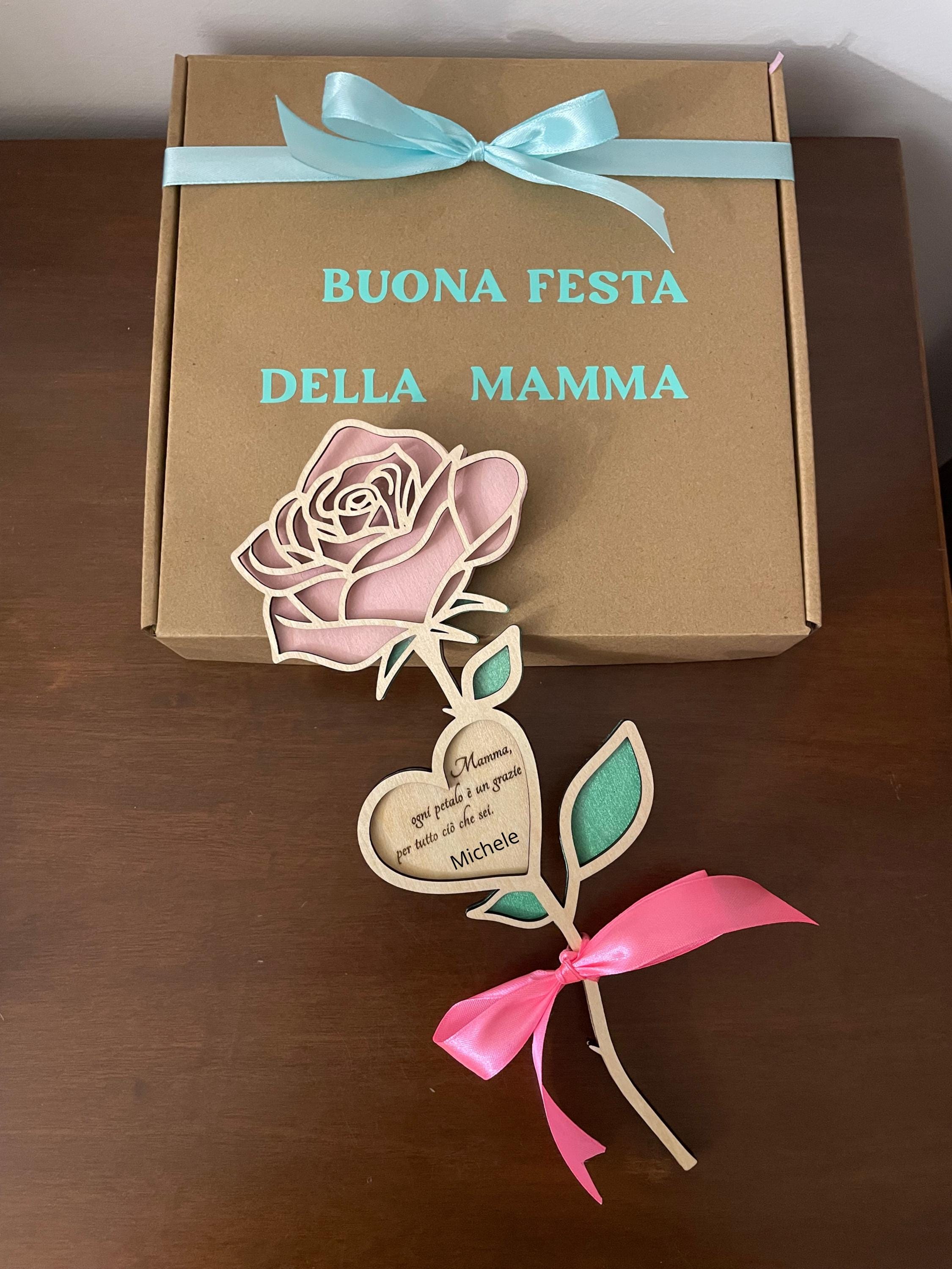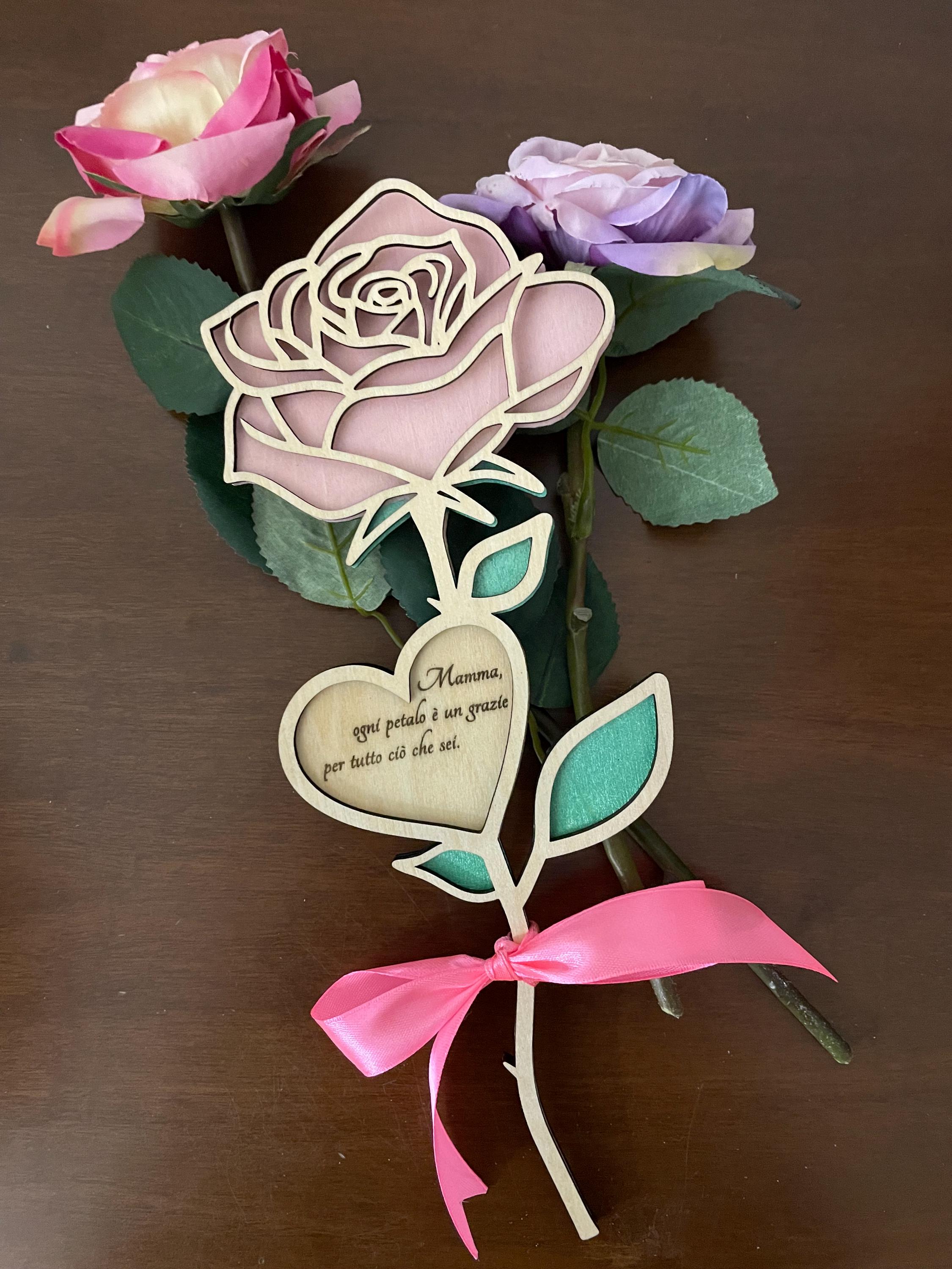 Surprise your mom with this hand-painted wooden rose, personalized with your name and a dedication. A flower that never fades, but endures over time, like the love between a mother and her child.