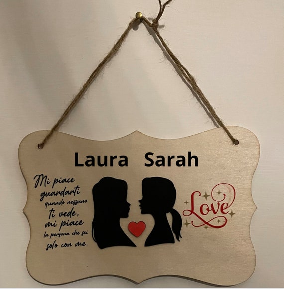 Handcrafted wooden plaque for lovers_ customizable with names (LGBT Valentine's Day gift idea)